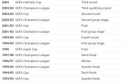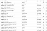 اسم هر تیمیو بخواید میتونید سرچ کنید مثلا bayern uefa تاریخچه افتخاراتش و همه چیشو میاره روی جزییاتم بزنید راجب اون سال نتایجو میاره