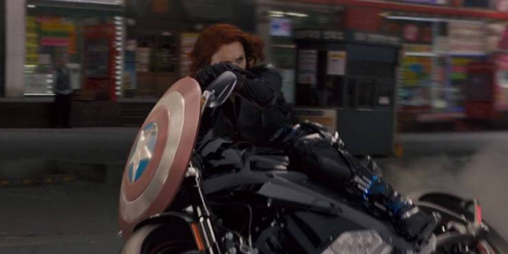 بلک ویدو هم به طرز موثری از سپر کاپیتان در یکی از فیلم های گذشته استفاده کرده است. او سپر را از کف خیابان برداشت وقتی که کاپیتان آن را در اونجرز: دوران التران از دست داد و موفق شد آن را برای کاپیتان پرتاب کند در حالیکه در نبرد با ربات مرگبار گیر کرده بود. اما بیوه سیاه دوباره هنگام نبرد پایانی دستش به سپر خورد. او از سپر برای نابود کردن تعدادی از ربات ها استفاده کرد و نشان داد چقدر در به کار بردن آن مهارت دارد. وقتی کاپیتان برگشت سپر را برای او پرتاب کرد تا یکی از ربات های دشمن را از پا در بیاورد و این پایان کار بیوه سیاه با سپر بود.