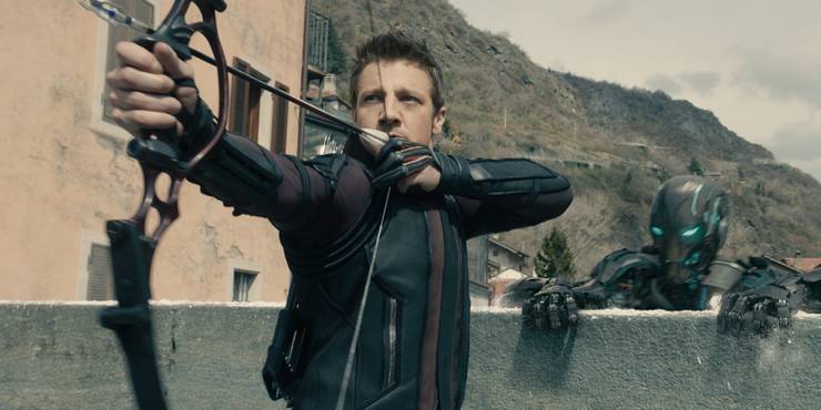در سکانس دیگری از اونجرز: دوران التران کلینت بارتون هدف گیری دقیق خود در استفاده از سپر را نشان داد. در ابتدای فیلم وقتی التران بیدار می شود, ربات کشنده برای حمله به انتقامجویان وقت تلف نمی کند. این حمله باعث غافلگیری آنها می شود به خصوص که در حال استراحت پس از یک مهمانی بودند و در فضای مبارزه قرار نداشتند. در حالیکه مرد آهنی و ثور توانستند سریع وسایل خود را پیدا کنند, کاپیتان آمریکا بسیار دور تراز سپر خود پرتاب شد. خوشبختانه چشم عقابی آنجا بود تا سپر را بگیرد و برای استیو در سمت دیگر اتاق پرتاب کند.