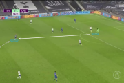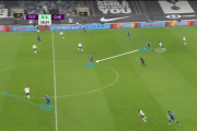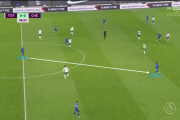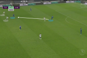 … اما به راحتی این چالش را دور زده و توانست توپ را به مونت برساند که فضای بسیار زیادی بین خطوط در برابرش بود.