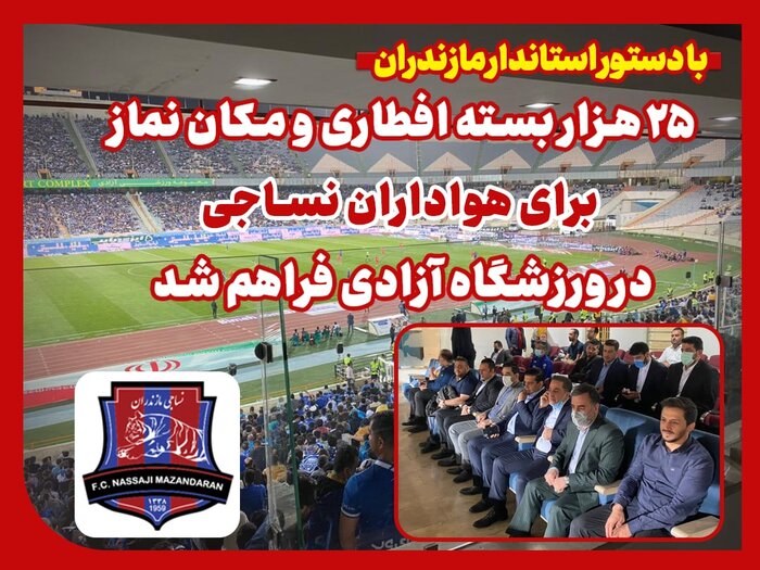 هواداران تیم فوتبال نساجی که امشب برای تشویق تیم محبوبشان در مسابقه مرحله نیمهنهایی جام حذفی به ورزشگاه آزادی میروند پیش از مسابقه با بستههای افطاری تهیه شده توسط استانداری مازندران پذیرایی میشوند.