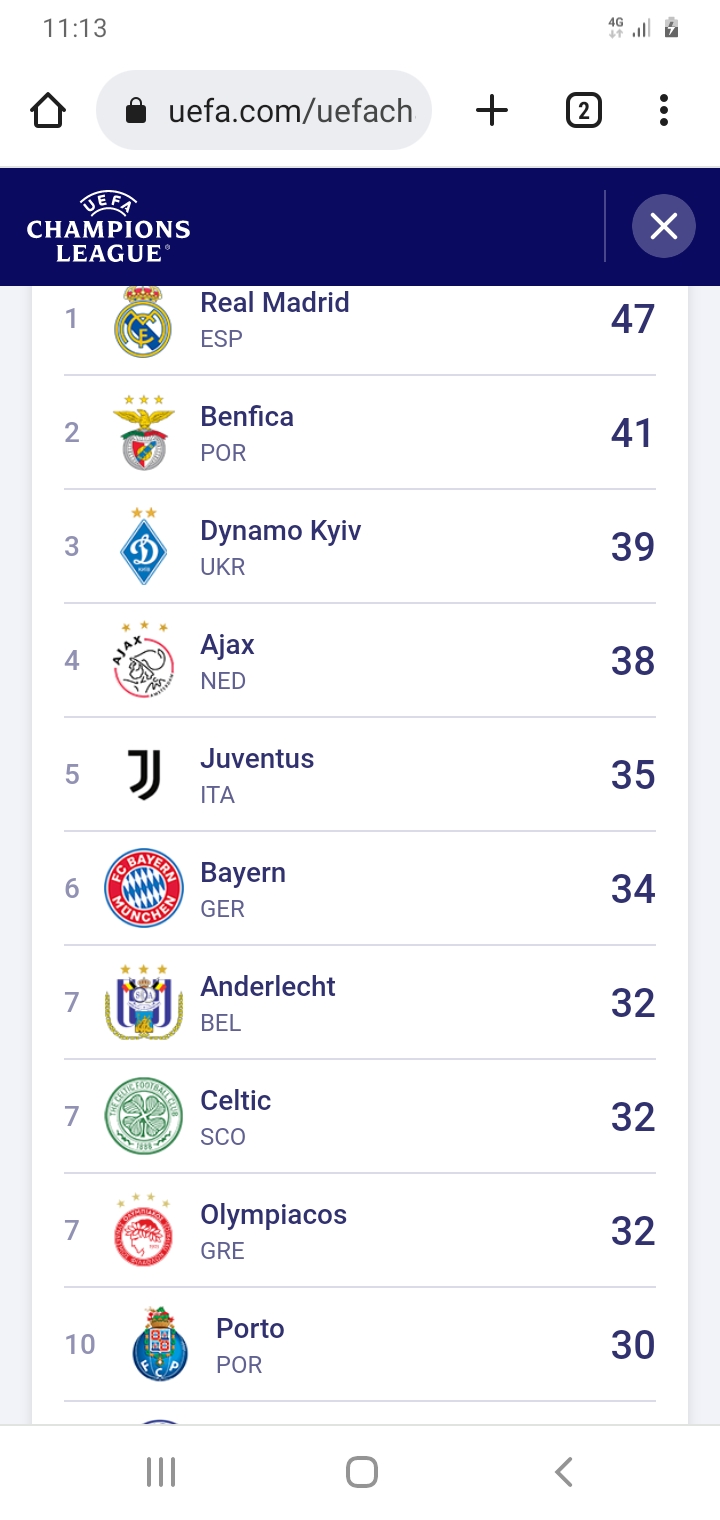 تعداد حضور یه سری از این تیما که کاملا گویاست به چه دلیله...مثلا دیناموکیف یا سلتیک یا بنفیکا در ضعیف ترین حالتشون هم در طول تاریخشون، بالاخره میتونستن سهمیه رو بگیرن. به دلیل اینکه همیشه یا قهرمان بودن و یا نایب قهرمان...