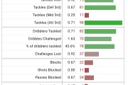 بخش آخری که آن را بررسی خواهیم کرد مربوط به توانایی های دفاعی این دو ستاره حال حاضر فوتبال ایتالیاست. همان طور که می بینید، لیائو تقریبا هیچ تلاشی برای تکل زدن انجام نداده و در این زمینه در پست خود بدترین است! در سوی مقابل کوارتسخلیا با وجود توانایی های هجومی خود، در دفاع تیمی هم نقش داشته و برای باز پس گیری توپ و تکل زنی تلاش می کند. در کل لیائو بازیکنی نیست که برای پرس تیمی نقشی ایفا کند و در هنگام دفاع، هم تیمی هایش باید جور او را بکشند، اما خویچا بازیکنی در خدمت دفاع تیمی است.