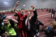 C’est une révolution. Des tauliers sont écartés, le coach veut faire les choses à sa façon. Résultat: deux titres de champion (2011 et 2012), une série de 36 matches sans défaite, et un surnom pour son équipe, “Roarcelona”, non sans rappeler le Barça dePep Guardiola. “Tout le monde jouait défensif, mais lui voulait du foot offensif, rapide, avec le ballon en mouvement. Ils ont détruit tout le monde”, applaudit en observateur son ex-dirigeant à SouthMelbourne. Gonflé à bloc, Postecoglou décide de tenter un nouveau challenge au Melbourne Victory. Mark Milligan, ancien capitaine des Socceroos, qui le connaît depuis les sélections jeunes, est sollicité: “Sa seule présencem’a fait revenir. Chaque jour, j’étais testé, j’apprenais, je ressortais plus fort.” Un an après, à quelquesmois du Mondial 2014, les Socceroos, placés dans une poule avec l’Espagne, leChili et les Pays- Bas, viennent de subir deux cinglantes défaites 0-6 contre leBrésil et la France. Ange Postecoglou est appelé au secours fin 2013. Il va rapidement revivifier tout un pays. AnteMilicic était son adjoint. “Je dis toujours que ça a été mon doctorat en coaching. Après avoir travaillé avec lui, je me sentais prêt à prendre n’importe quel poste.” L’équipe perd ses trois matches, mais est loin d’être ridicule. “Les huit semaines de prépa ont été parmi les plus éreintantes de ma vie, se rappelle Mark Milligan, qui pointe l’obsession des détails du boss. Il voyait tout. Si tu ralentissais, ça pouvait te coûter ta place. La clé, c’était la confiancemutuelle. Que mon coéquipier bosse aussi dur que moi, qu’il croie autant que moi en notre philosophie.”