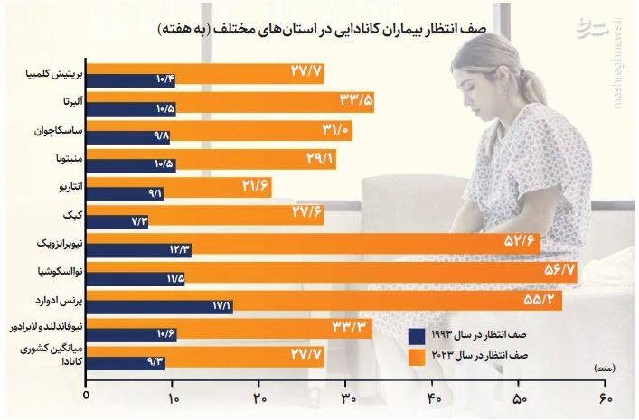 در عین حال دریافت خدمات درمانی دولتی برای شهروندان و ساکنان کانادا نیازمند صبر چندماهه در صفهای انتظار است. گزارش مؤسسه فریزر در دسامبر ۲۰۲۳ یعنی ۳ماه پیش نشان میدهد که بیماران کانادایی طولانیترین زمان انتظار را برای درمان پزشکی در میان کشورهای آمریکایی و اروپایی تجربه میکنند. براساس این گزارش، میانگین صف انتظار برای بیماران ۲۷.۷ هفته و چیزی معادل ۶ماه و نیم است. این زمان انتظار بهطور قابلتوجهی بیشتر از سال ۲۰۲۲ و تقریبا ۳ برابر زمان انتظار در سال ۱۹۹۳ است.