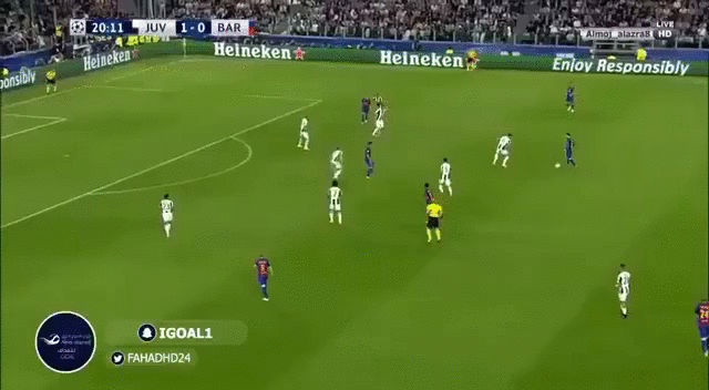 پاس مسی به اینیستا در جریان بازی رفت یک چهارم نهایی فصل 2016/2017 لیگ قهرمانان اروپا اروپا مقابل یوونتوس