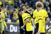جشن قهرمانی در دورتموند، با بوخوم و شالکه تفاوت است؛ هیتسفلد و سامر مشغول بحث و گفتگو هستند. نیباوم درِ گوش هیتسفلد میگوید