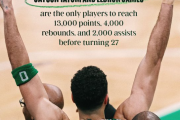 ۱۰.ثبت ۱۵۰۰ سه امتیازی اولین بازیکن جوان تاریخ ان بی ای و سلتیکس با ثبت این مهم در سن ۲۶ سالگی