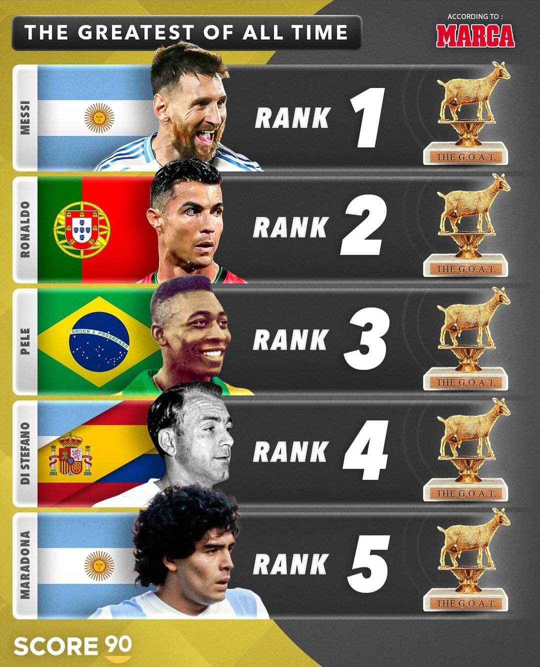 در این مطلب پنج بازیکن برتر تاریخ فوتبال به انتخاب روزنامه مارکا را بررسی می کنم. در این لیست بازیکنانی مثل کریستیانو رونالدو و لیونل مسی حضور دارند.