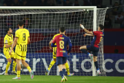 دورتموند در انتهای نیمه اول فرصتهایی به دست آورد اما بیدقتی سرهو گیراسی باعث شد ۲ تیم با برتری خفیف میزبان به رختکن بروند. بلوگرانا با آغاز ۴۵ دقیقه دوم به گل بعدی رسید. ارسال لامینه یامال به سمت تیر دوم با اثرگذاری رافینیا به دهانه دروازه برگشت تا با ضربه سر روبرت لواندوفسکی به تور دروازه گرگور کوبل بچسبد.