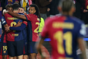 بازی با سلطه و سیطره کامل بارسلونا بر توپ و میدان همراه بود و گل نخست میزبان بعد از ۲۵ دقیقه حمله مداوم به دست آمد. کریم آدیمی با خطا و کشیدن موی کونده کارت زرد گرفت و ارسال همین ضربه آزاد به گل اول انجامید. فرمین لوپس توپ را ارسال کرد و کوبارسی توپ برگشتی را راهی دروازه ساخت. رافینیا با شیرجه به سمت توپ روی خط دروازه نام گلزن را عوض کرد؛ هرچند نزدیک بود به دلیل آفساید موقعیت را به باد دهد.