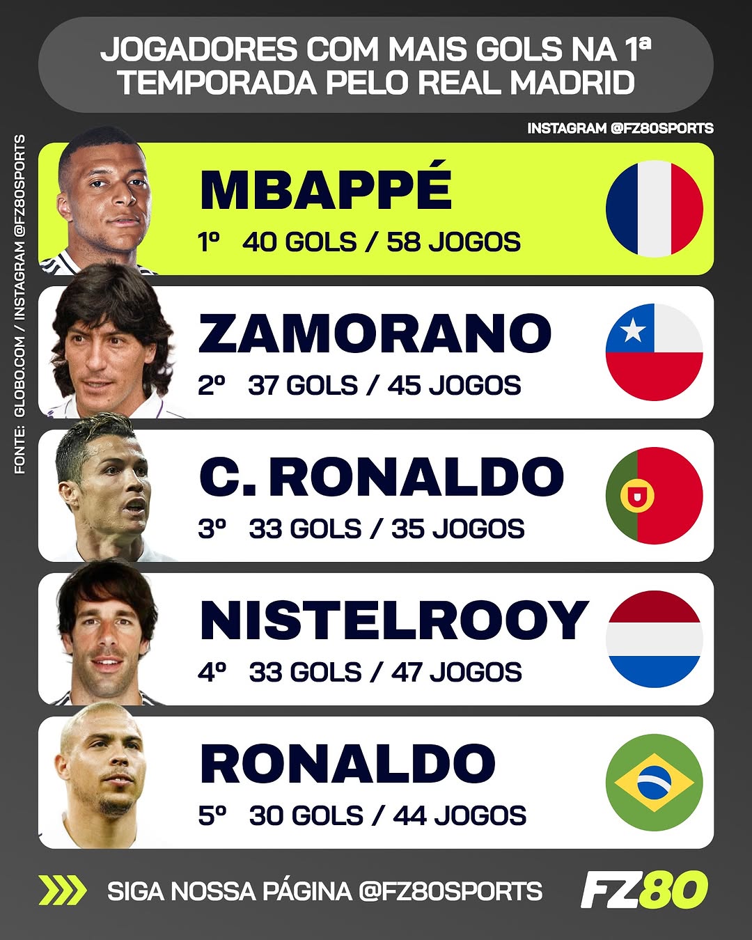 کلمات کلیدی: رئال مادرید، گلزنان، فصل اول، امباپه، زامورانو، کریستیانو رونالدو، فن نیستلروی، رونالدو نازاریو، لوس بلانکوس، فوتبال، لالیگا.