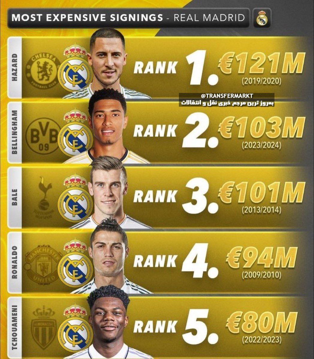 گران ترین خرید تاریخ رئال مادرید، ادن هازارد است. هازارد در تابستان 2019 بود که از چلسی با مبلغ 115 میلیون یورو در حالی که 29 سال سن داشت، به رئال مادرید پیوست. می توان ادن هازارد را ناکام ترین خرید تاریخ رئال مادرید هم معرفی کرد. او در میان هواداران رئال مادرید تبدیل به یک چهره منفور شد و اصلا عملکرد خوبی در رئال مادرید نداشت و همواره مصدوم بود و با مشکل اضافه وزن دست و پنجه نرم می کرد.