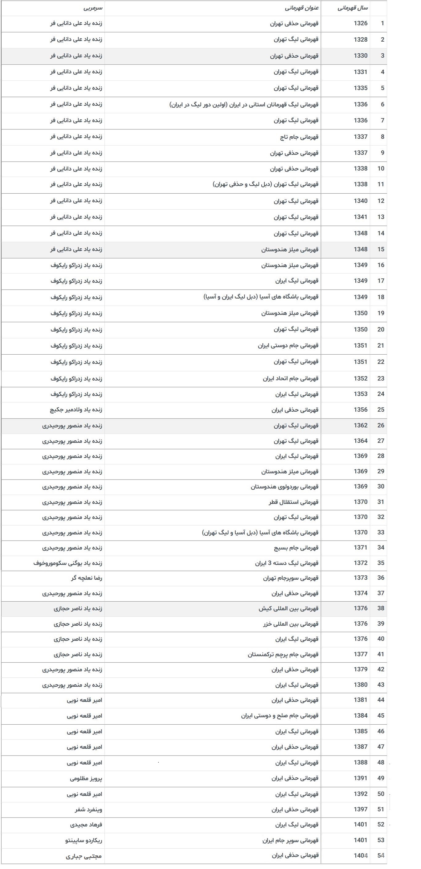 پست خاص | تمام 54 قهرمانی تاریخ استقلال + سال قهرمانی و نام مربیان