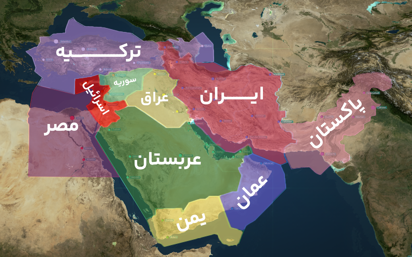 نقشه اولیه بازی که مرز زمینی + مرز آبی کشورها را نشان می دهد.
