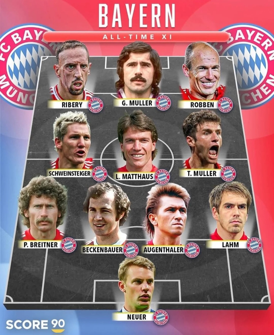 تیم منتخب تاریخ بایرن مونیخ، تلفیقیست از نسلهای مختلف بازیکنان خارقالعادهای که هر کدام تاریخساز بودهاند. این ترکیب، نمادیست از قدرت، اصالت و افتخار یک باشگاه جاودانه.
