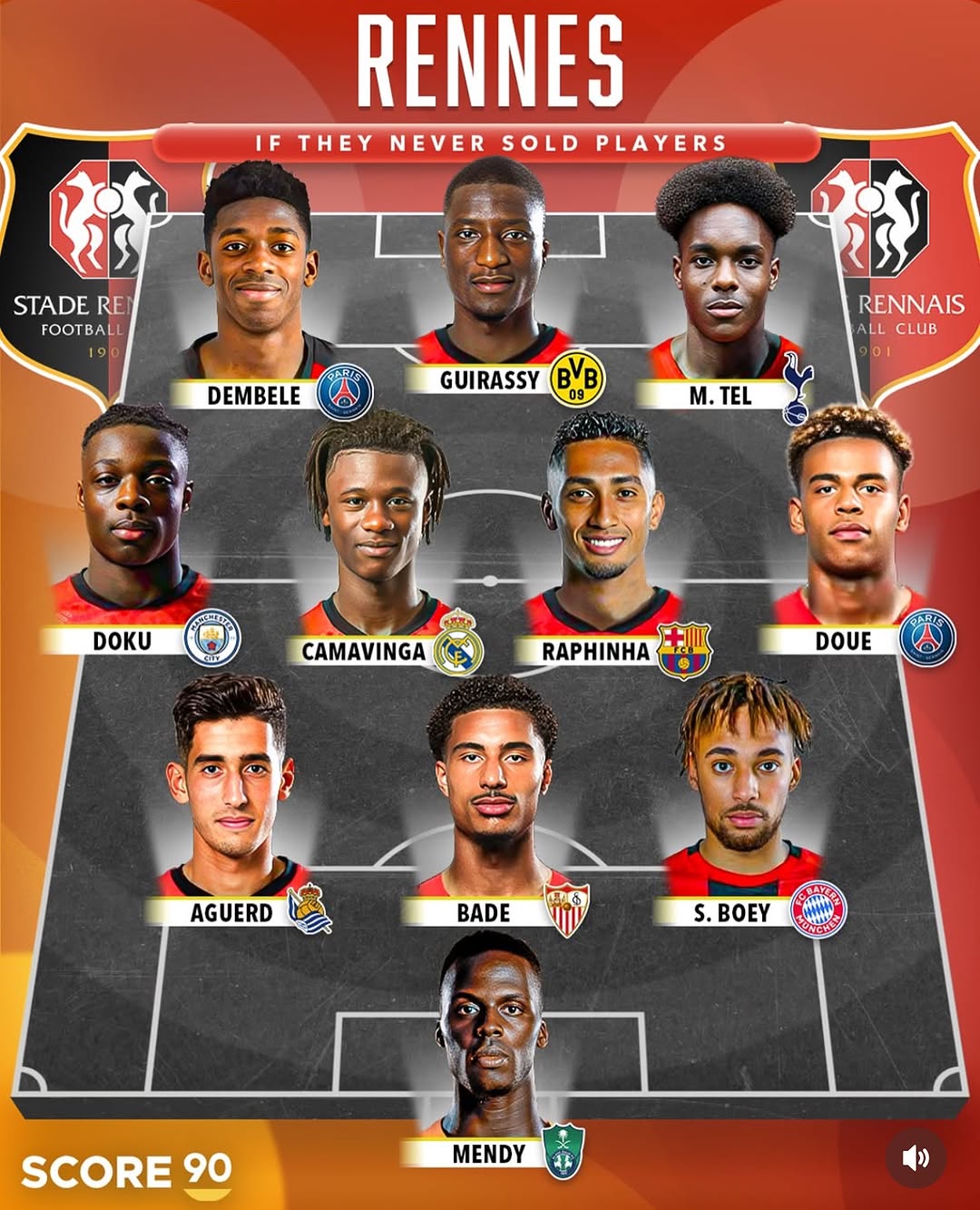 ترکیب قدرتمند باشگاه رن اگر ستارگان خود را از دست نمیداد با حضور رافینیا _ کاماوینگا _ گیراسی _ دمبله