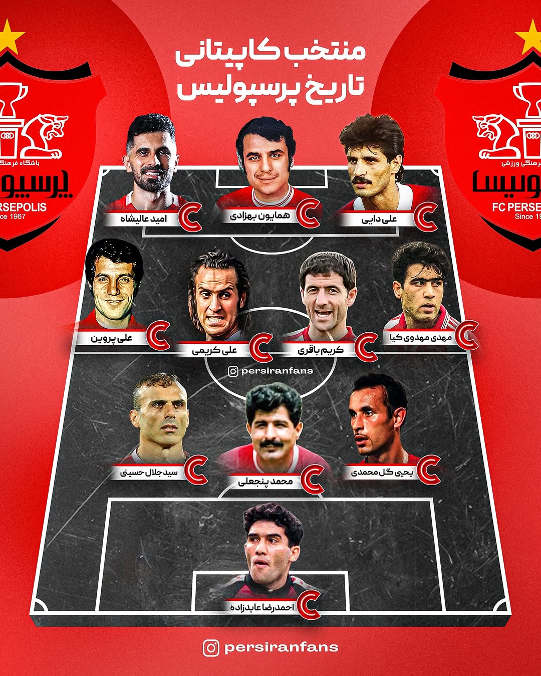 ترکیب منتخب برترین کاپیتان های تاریخ پرسپولیس با حضور امید عالیشاه _ علی دایی _ کریم باقری _ علی پروین