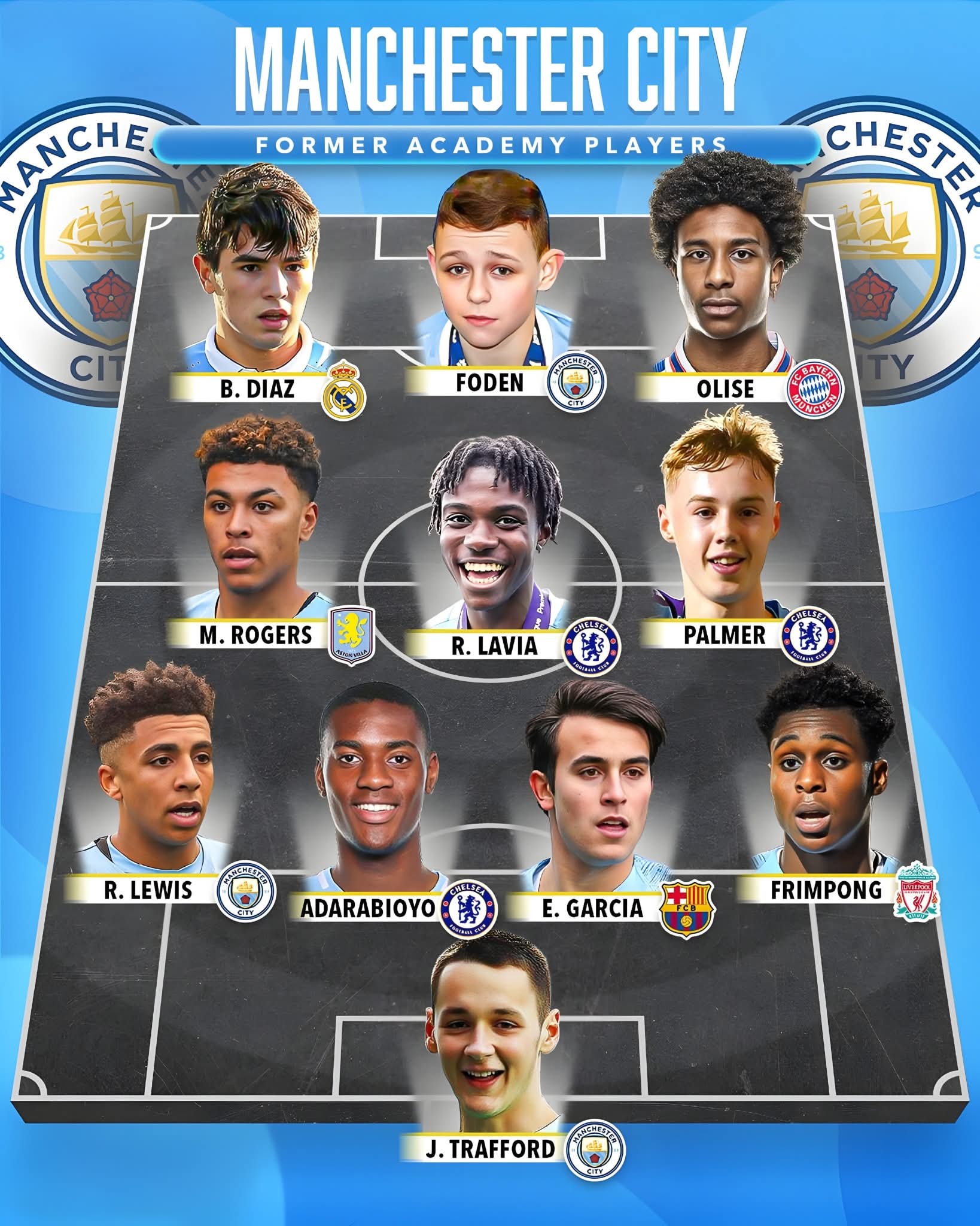 با این ترکیب، منچسترسیتی میتواند استاندارد بالایی از بازیکنان جوان و با استعداد آکادمی خودش را به نمایش بگذارد که بسیاری از آنها در تیمهای مطرح اروپایی بازی میکنند.