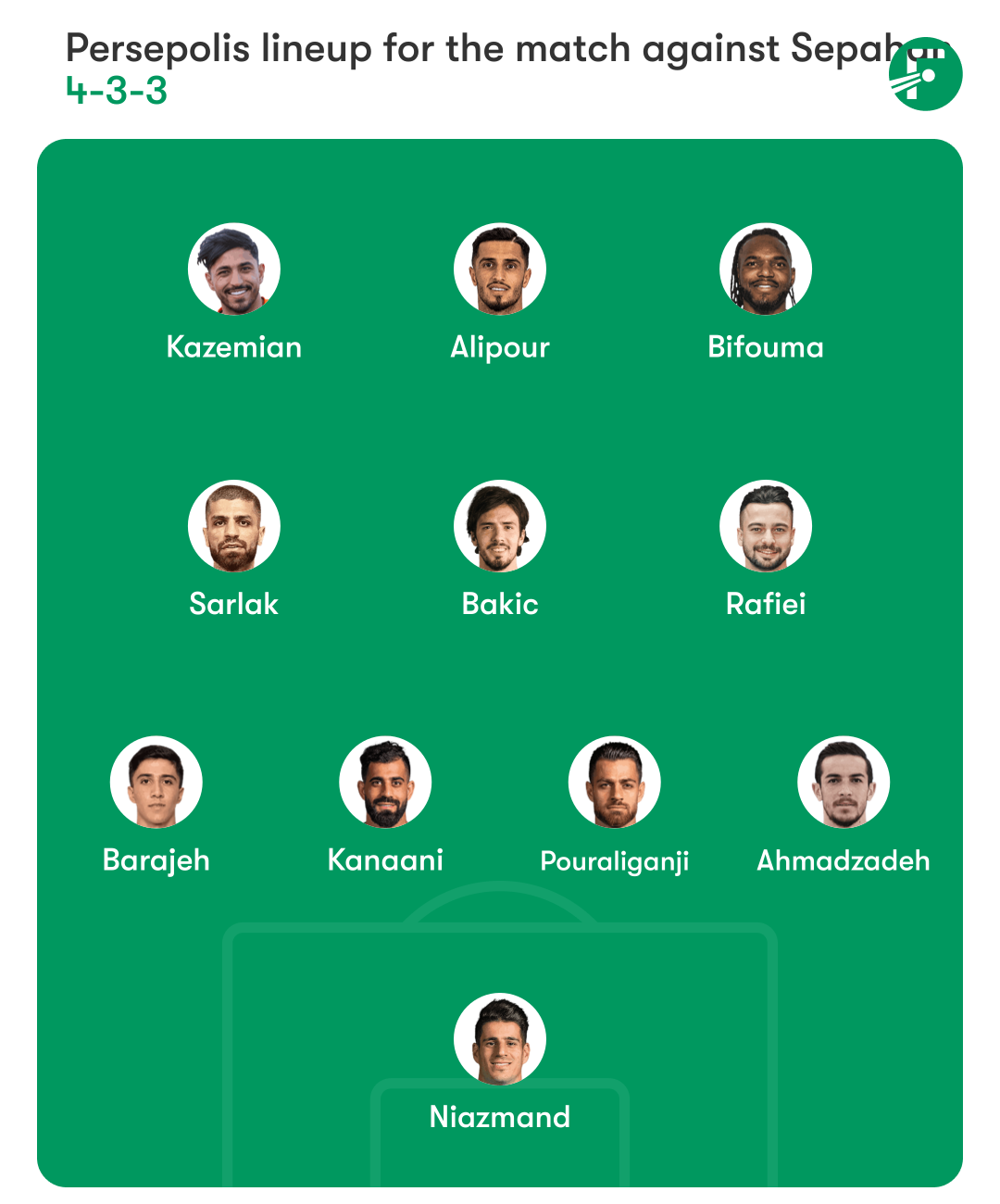 ✅ ترکیب احتمالی پرسپولیس برای دیدار با سپاهان؛ با حضور بیفوما، نیازمند و رفیعی/ ستاره هپاتیتی حضور ندارد