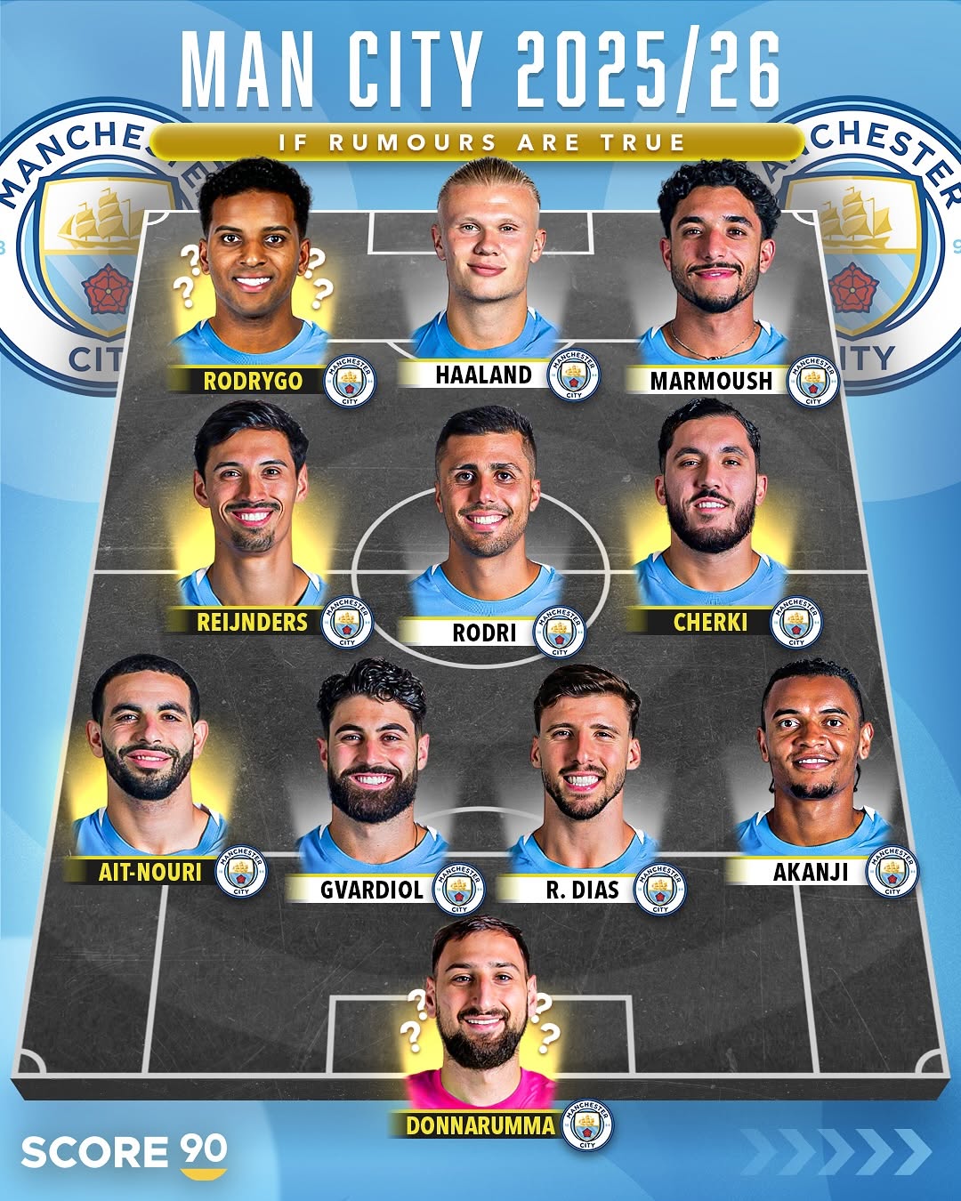 اتفاقاتی که در فصل ۲۵-۲۰۲۴ برای منچسترسیتی رخ داد، سران این تیم را مجاب خواهد کرد که در بازار نقل و انتقالات تابستانی ۲۰۲۵ فعال باشند. رسانه Score 90 به همین مناسبت و با توجه به شایعات نقل و انتقالاتی پیرامون منچسترسیتی، یک ترکیب احتمالی و فانتزی برای آینده سیتیزنها انتخاب کرده است.