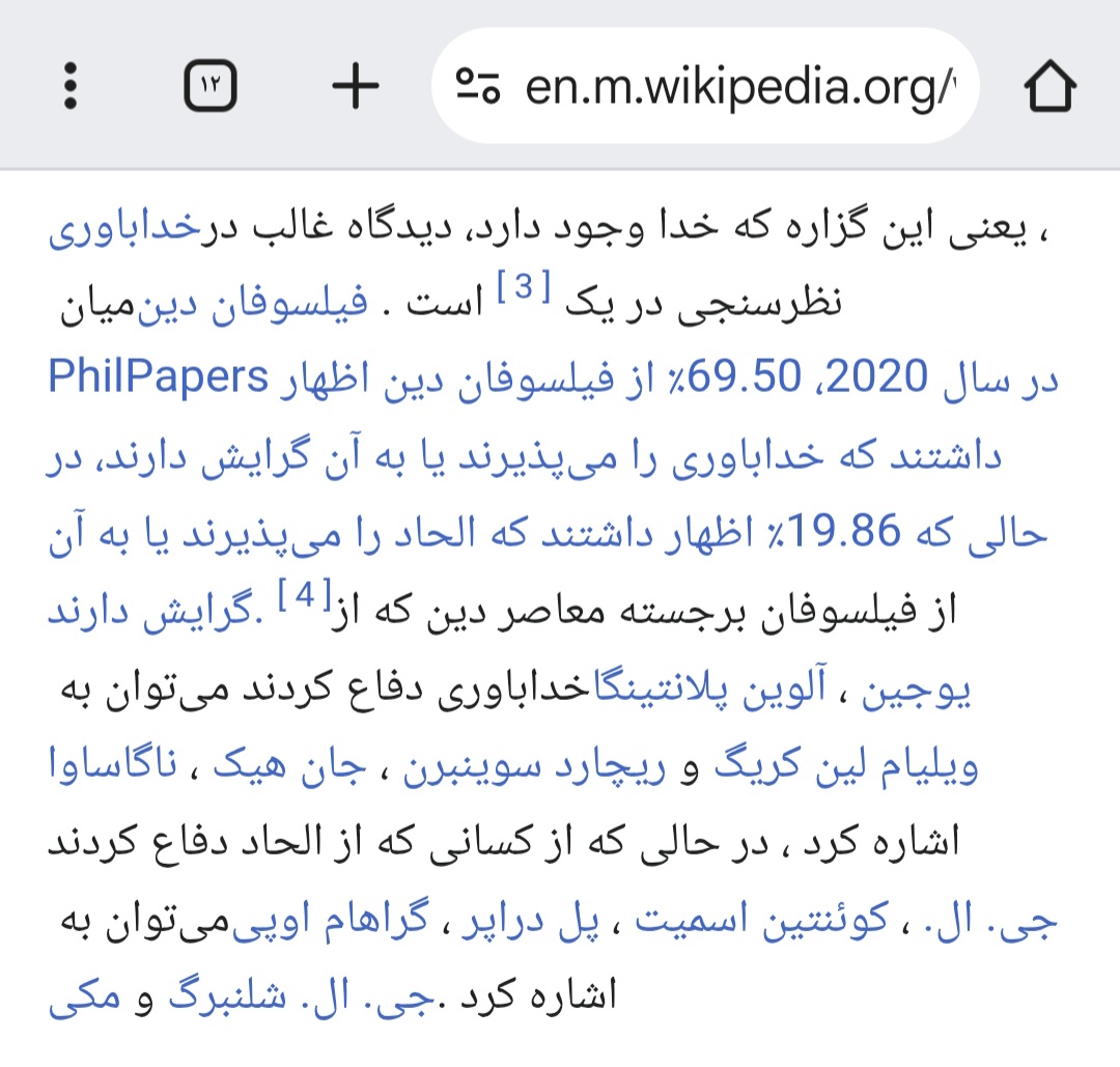 آمار فلاسفه تخصصی این بحث ۷0 به 16 به نفع خداباوری