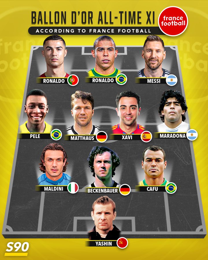 لو یاشین، فرانس بکن بائر، مارکوس کافو، پائولو مالدینی، ژاوی هرناندز، لوتار ماتئوس، پله، مارادونا، لیونل مسی، کریستیانو رونالدو، رونالدو نازاریو