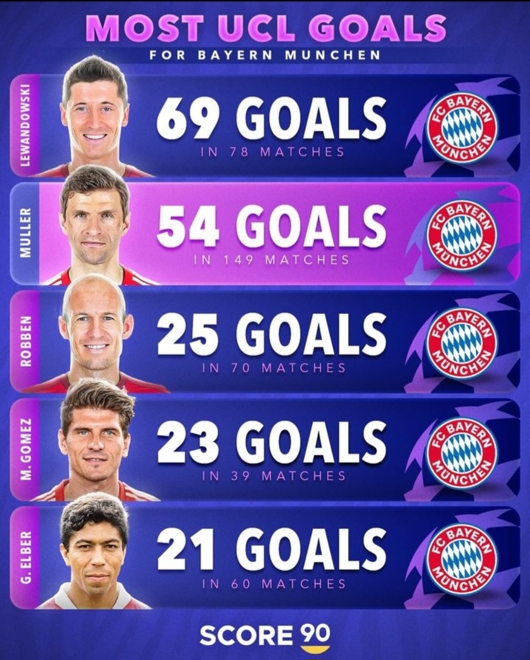 دوران تصدی آرین روبن در بایرن مونیخ به خاطر سرعت فوقالعاده، مهارتهای دریبلنگاری و شوتهای معروف پای چپ او از جناح راست به یاد میآید. روبن در سال 2009 به بایرن پیوست و به سرعت مورد علاقه هواداران قرار گرفت. توانایی او در برش از جناحین و شلیک ضربات قدرتمند او را به تهدیدی دائمی برای دفاع تبدیل کرد. 25 گل روبن در 70 بازی، نقش او را در قدرت تهاجمی بایرن نشان می دهد. یکی از نمادین ترین لحظات او در فینال لیگ قهرمانان اروپا در فصل 2012-2013 بود، جایی که او گل پیروزی را در برابر بوروسیا دورتموند به ثمر رساند و پنجمین عنوان قهرمانی اروپا را برای بایرن به ارمغان آورد.