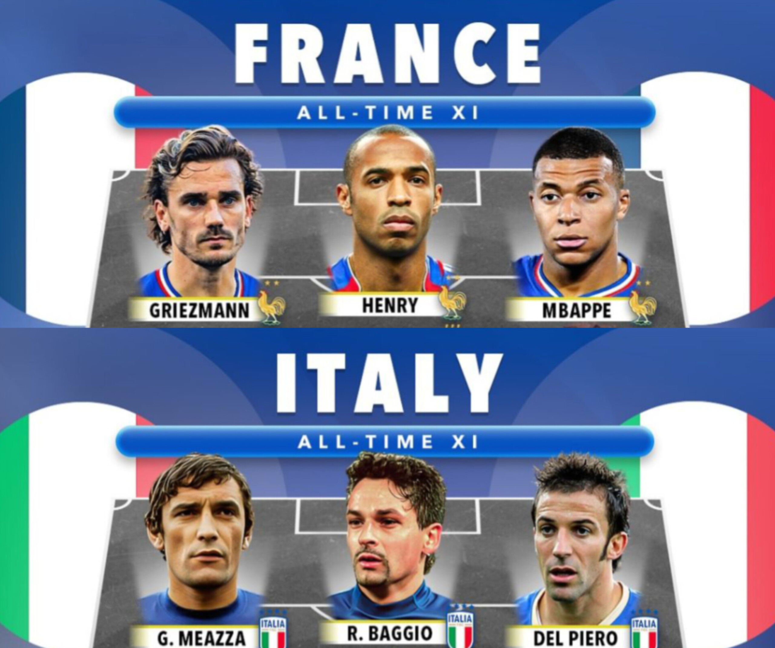 🔹 ایتالیا بیشتر روی استحکام دفاعی و بازیسازی حساب کرده است. خط دفاعی با بارزی، کاناوارو و مالدینی افسانهای است و شاید بهترین خط دفاع تاریخ فوتبال باشد. دروازهبان هم بوفون است که از بهترینهای تاریخ است. در خط میانی پیرلو بازیساز و ریورا + توتی خلاقیت و تکنیک را میآورند. در خط حمله هم ستارههایی مثل دلپیهرو و باجو در کنار مهآتزا (ستاره دهههای قدیم) حضور دارند.