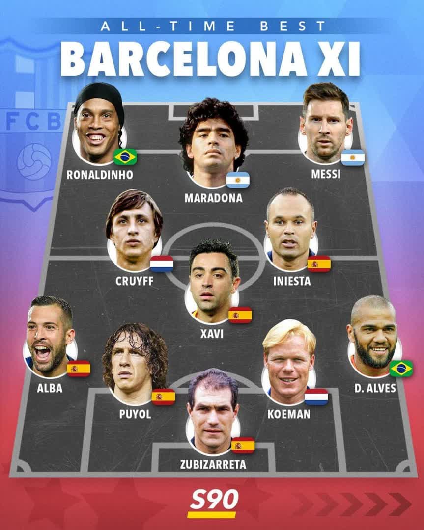 آلوز، یکی از بهترین مدافعان راست تاریخ برزیل در ترکیب منتخب تاریخ بارسا حضور دارد. کومان، گلزنترین مدافع تاریخ که با ضربات کاشتهاش تاریخساز شد، نیز نفر سوم ترکیب است. پویول، کاپیتان شجاع و فروتن، ستون روحی و بدنی خط دفاع بود. آلبا با سرعت فوقالعاده، جناح چپ را مانند شعله درمینوردید. چهار مدافعی که دفاع را به هنر تبدیل کردند، نه فقط وظیفه. ترکیبی از جنگندگی، خلاقیت، هوش و تعصب بودند.