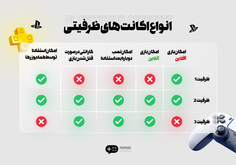یکی از موضوعات مهم در خرید اکانت قانونی پلیاستیشن ۵، آشنایی با تفاوت ظرفیت های PS5 است که هر اکانت بسته به نوع استفاده و تعداد کنسولها در سه ظرفیت عرضه میشود: