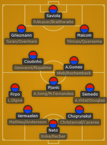 مهاجمان: مالکوم، ساویولا، آنتوان گریزمان