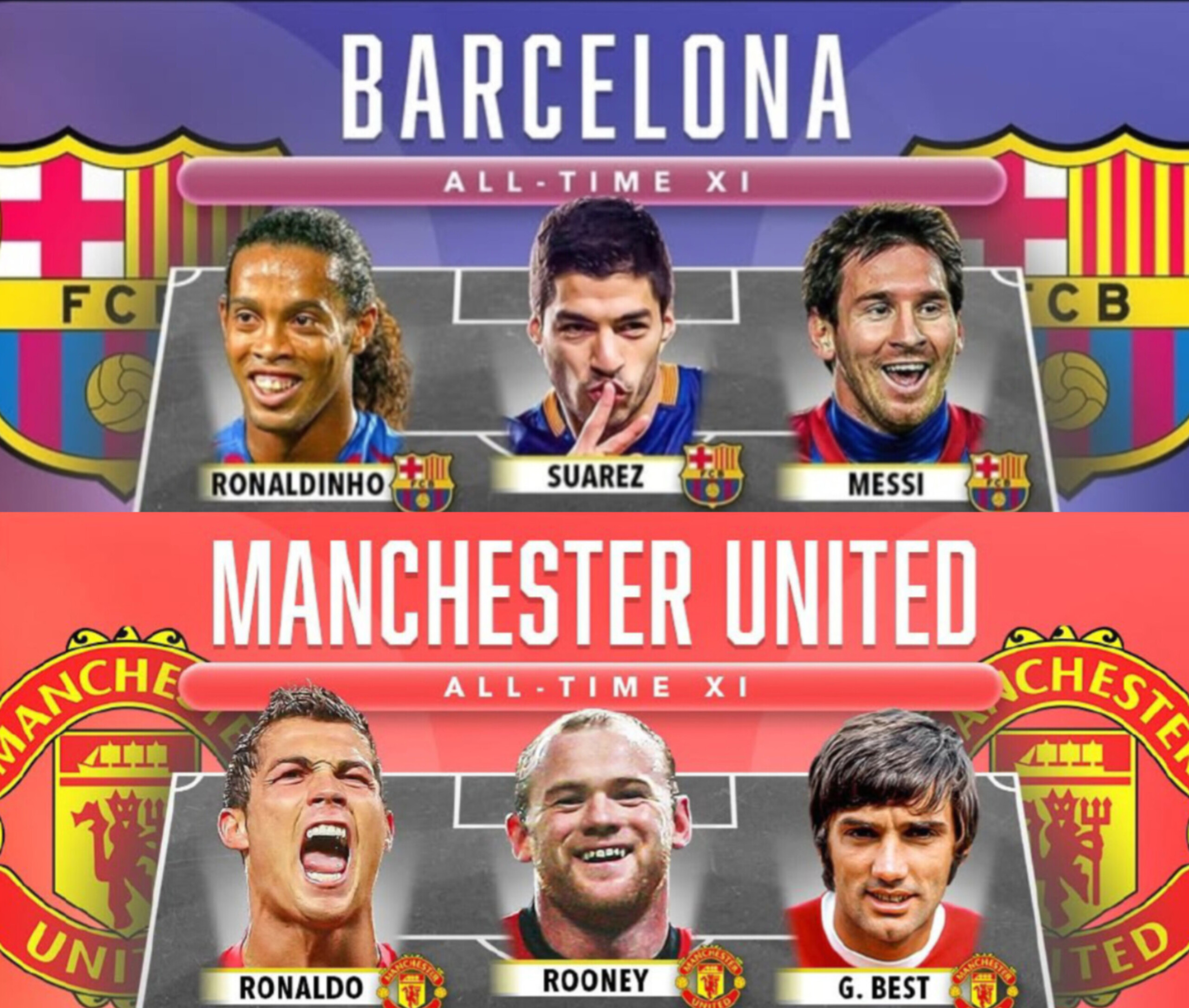 مقایسهی دو ترکیب منتخب تاریخ بارسلونا و منچستریونایتد همیشه بحثبرانگیز است، چون هر دو باشگاه پر از اسطورههاییاند که تاریخ فوتبال را شکل دادهاند.