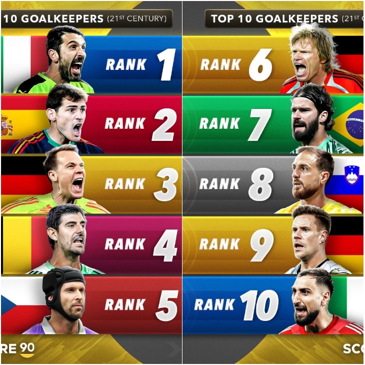 معرفی 10 دروازبان پر افتخار و افسانه ای در قرن 21 از نگاه score 90 با حضور جانلوئیجی بوفون ، ایکر کاسیاس