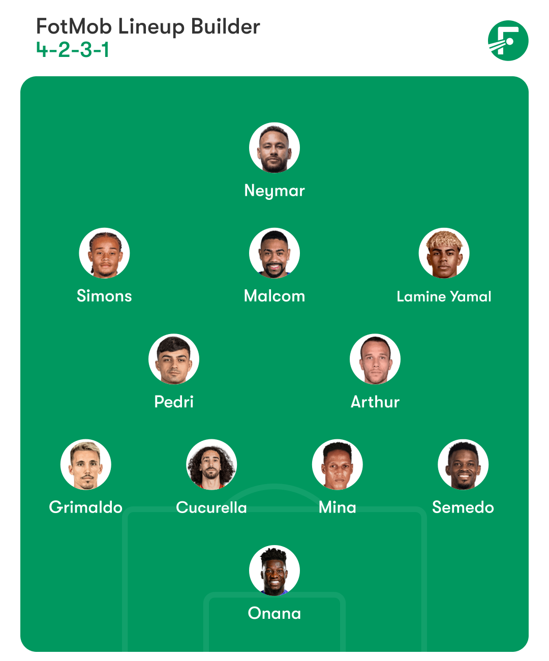 هافبکها: آرتور ملو - پدری - یامال - مالکوم - ژاوی سیمونز