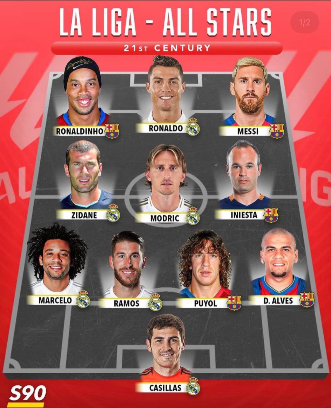 ترکیب منتخب لالیگا در قرن ۲۱ ؛ با حضور رونالدینیو، لیونل مسی و کریستیانو رونالدو