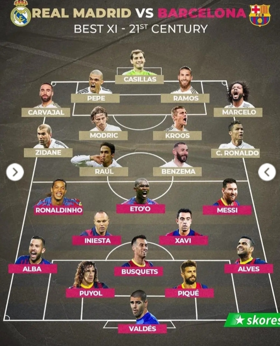 فوتبال اسپانیا در قرن ۲۱ میزبان دو باشگاه افسانهای و بیرقیب در سطح جهان بوده است: رئال مادرید و بارسلونا. هر دو تیم با ترکیبی از ستارگان درخشان و اسطورههای فوتبال، موفق به کسب افتخارات متعدد شدهاند. در این مقاله به بررسی و مقایسه ترکیب منتخب بهترین بازیکنان این دو تیم در قرن ۲۱ میپردازیم؛ تیمهایی که در هر خط مهرههای خاص و متفاوتی دارند و هریک به شکلی فوتبال مدرن را متحول کردند