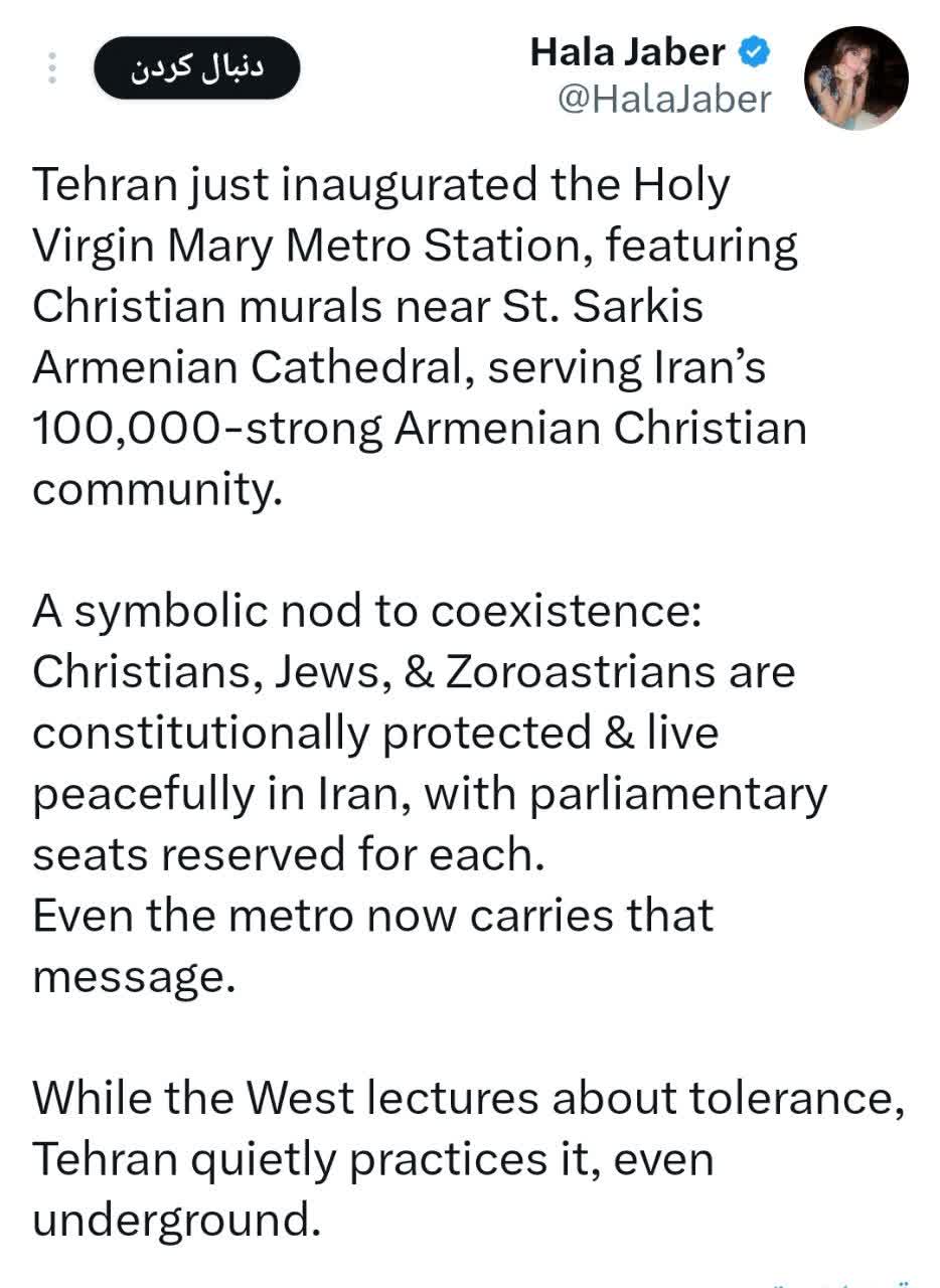 در حالی که غرب دربارهی مدارا و تساهل صرفا سخنرانی میکند، تهران quietly (در سکوت) آن را در عمل نشان میدهد — حتی در زیر زمین.