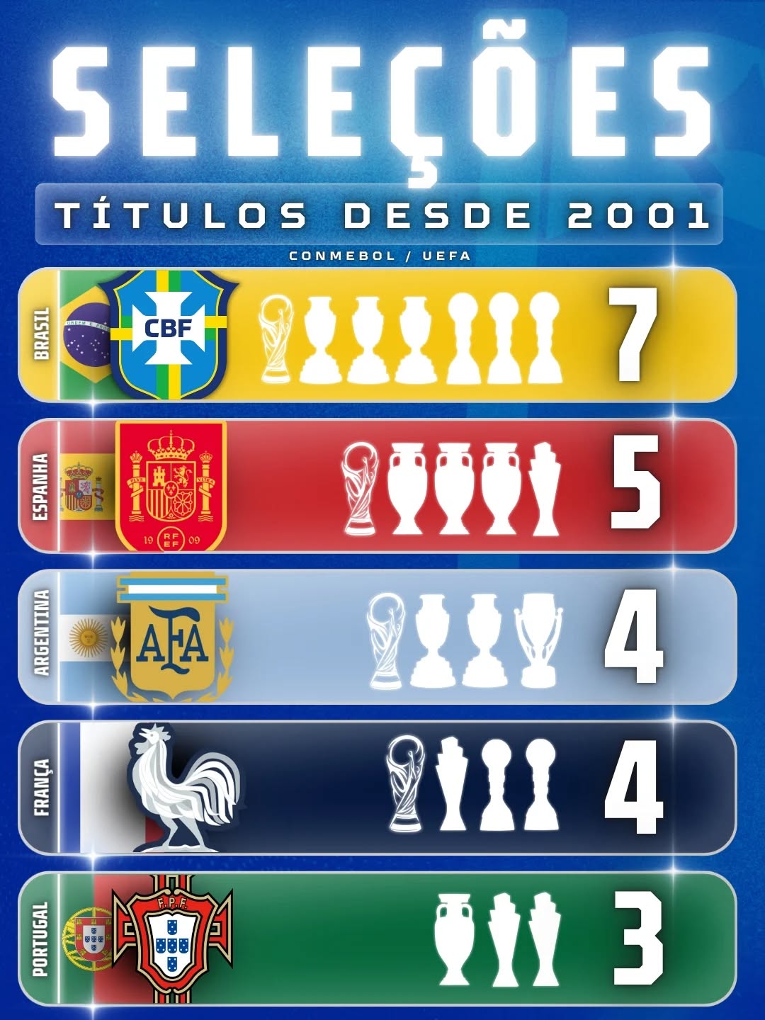 پر افتخار ترین تیم های ملی فوتبال در قرن 21 / برزیل با 7 قهرمانی پیشتاز در قرن جدید