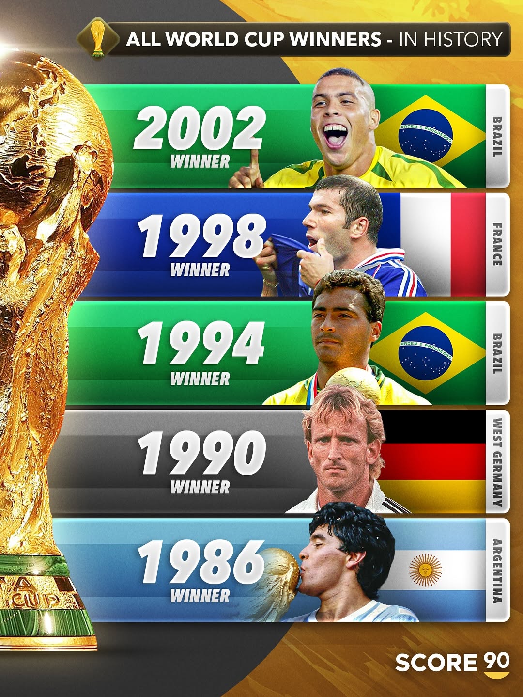 🏆 قهرمانان جام جهانی فوتبال از ۱۹۸۶ تا ۲۰۰۲