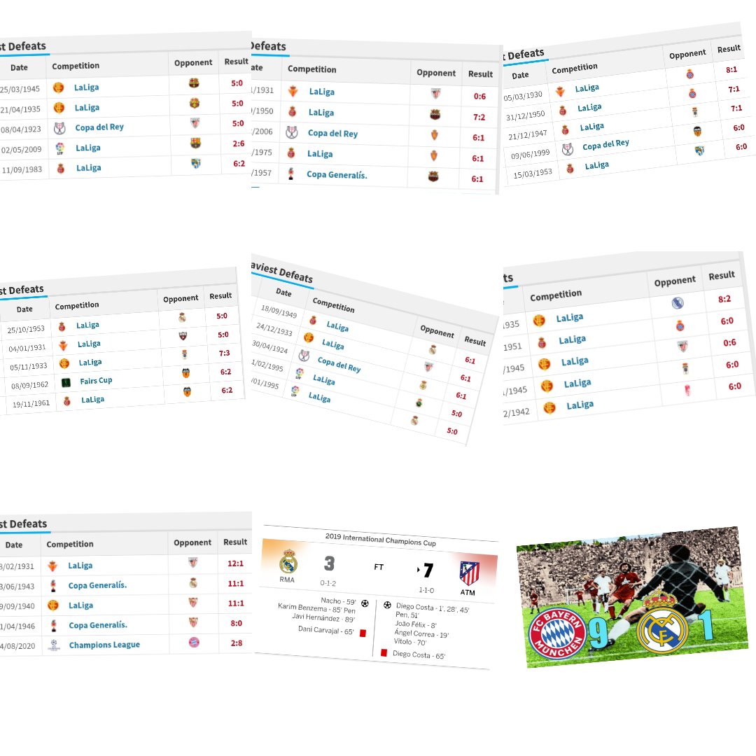 »« بعد از ۱۹۵۷ این نتایج باخت های رئال مادرید با + ۶ گل خورده بوده اند .