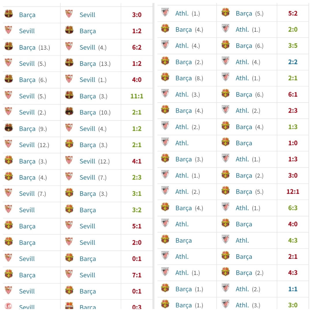 یا مورد بعدی ۱۱.۱ سویا که هفته اول لالیگای ۱۹۴۰ و بارسلونایی که هنوز آماده رقابت نبود ، فرانکویی که بخش زیادی از مردم بارسلونا رو به اردوگاه اجباری فرستاد که به ( وحشت سفید ) معروفه ، ۲۰۰ تا ۴۰۰ هزار نفر کشته بر اثر کار اجباری و اعدام ، که فقط ۱۹۳ هزار مورد تایید شده و بخش زیادیش از شهر بارسلونا بوده . جنایاتی که بخش زیادیش دامان شهر بارسلونا رو گرفت . تعدادی از خانواده های بازیکنای بارسا در این سال ها جان باختن لازم به ذکر نیست که مدیر بارسا در سالها توسط مامورین فرانکو اعدام شد و رئال مادرید هم شرایط تقریبا مشابهی رو تجربه میکرد ، تیم سویا هیچوقت نتونسته بود بارسا رو با اختلاف بیش از ۲ گل شکست بده تا قبل از بازی