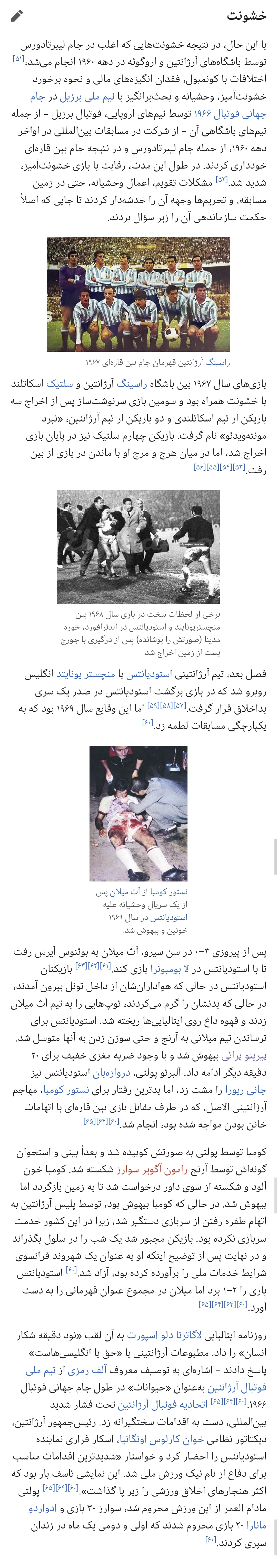 شما تنها با خواندن نحوه بازی تیم استودیانتس آرژانتین در جام های بین قاره ای مقابل بقیه تیم ها ، چشمه ای از خشونت داخل استادیوم های اسپانیایی در آن دوره رو درک خواهید کرد .