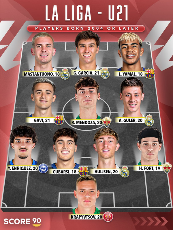 لالیگا میزبان ستارگان جوانی مثل لامین یامال، آردا گولرو پائو کوبارسی است که با ارزش بازار بالا و عملکرد استثنایی، آینده اسپانیا را میسازند. این تیم با تمرکز روی خلاقیت هجومی و دفاع محکم، شامل استعدادهایی مانند دین هویسن و گاوی است که در سال ۲۰۲۵ جوایز متعددی کسب کردهاند.