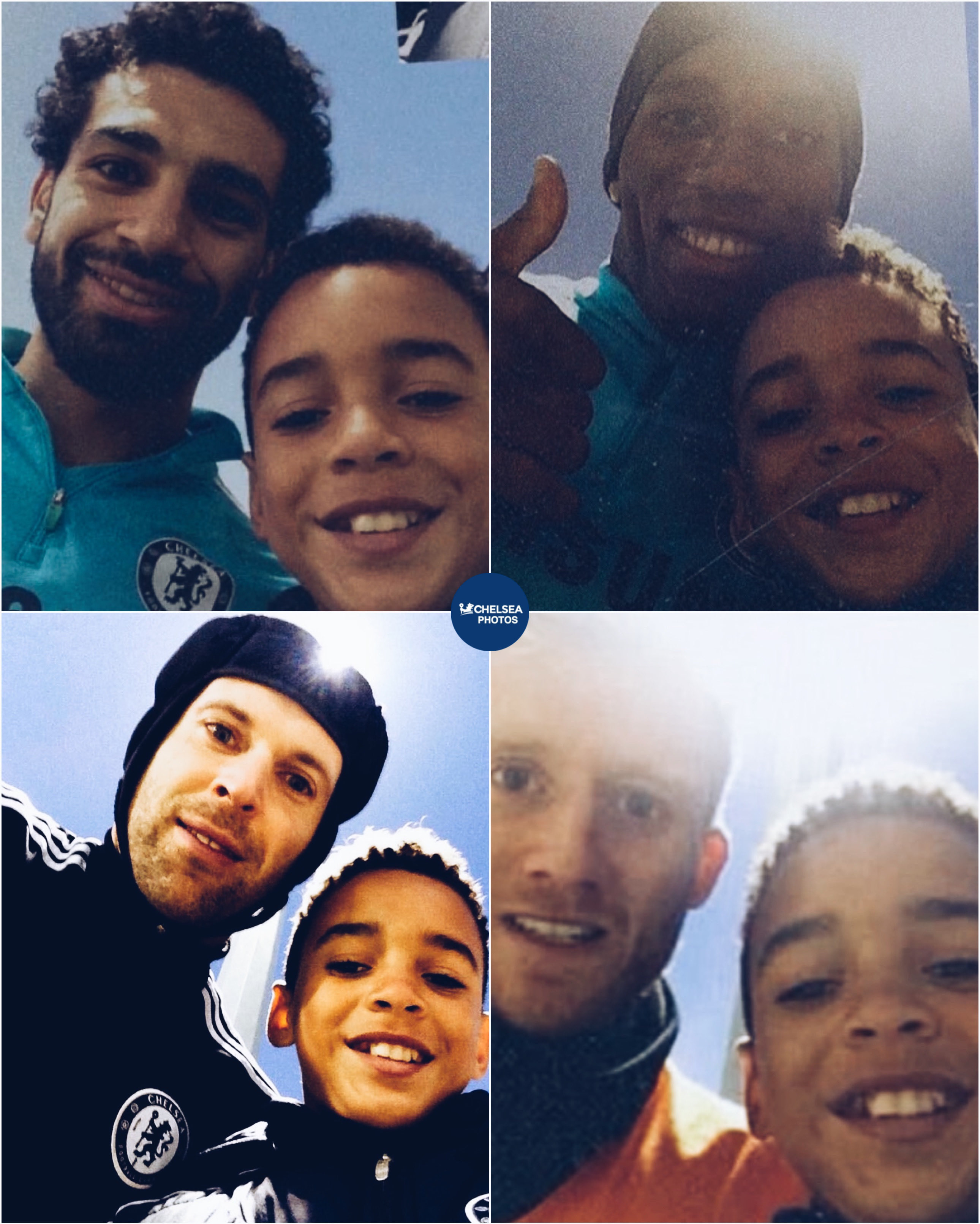 این کلاژ تصویری، «جمال موسیالا»ی جوان را نشان میدهد؛ زمانی که پسری ۱۱ ساله در آکادمی جوانان چلسی بود و در حدود سال ۲۰۱۴ با ستارههای تیم عکس سلفی میگرفت.