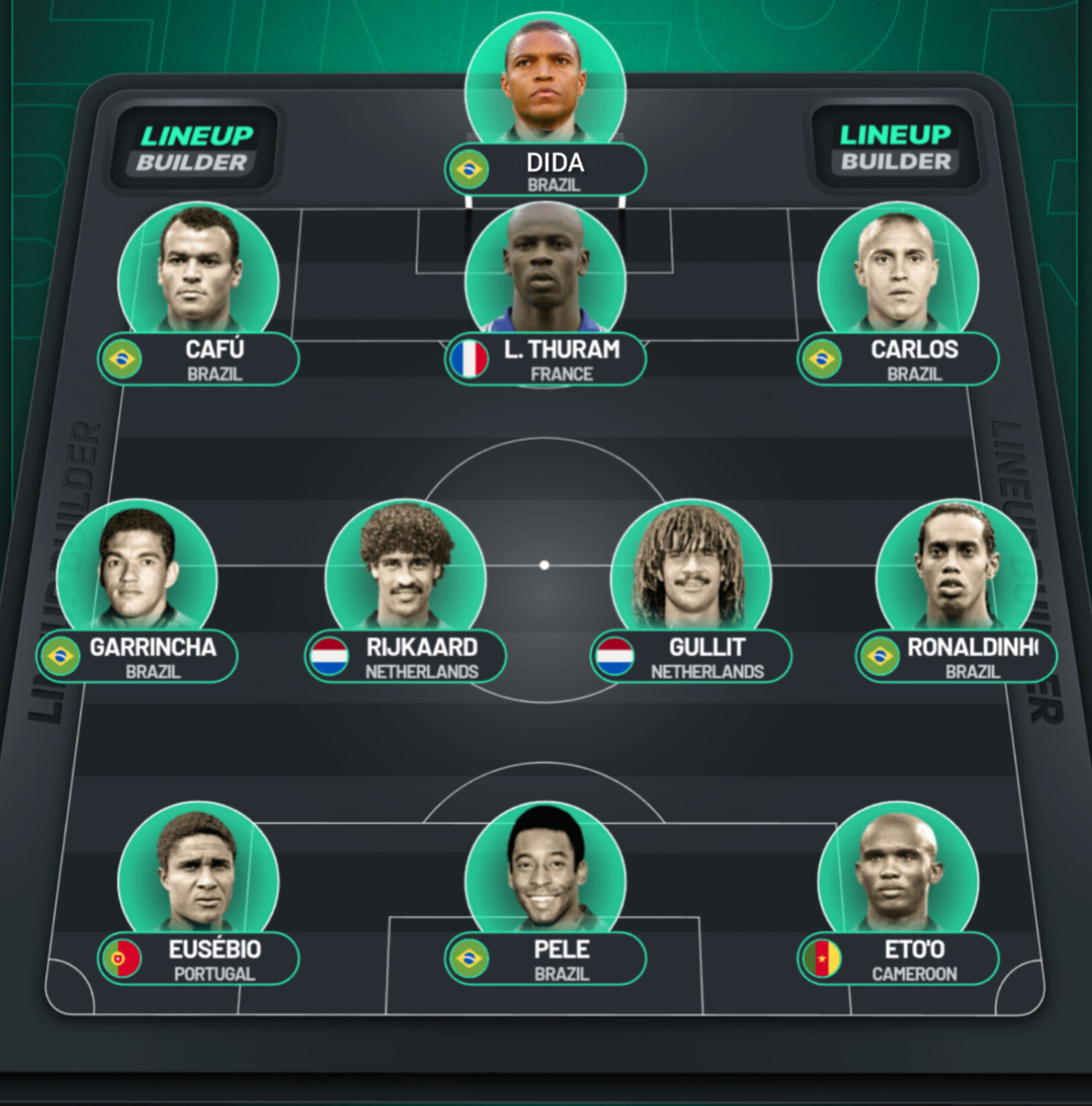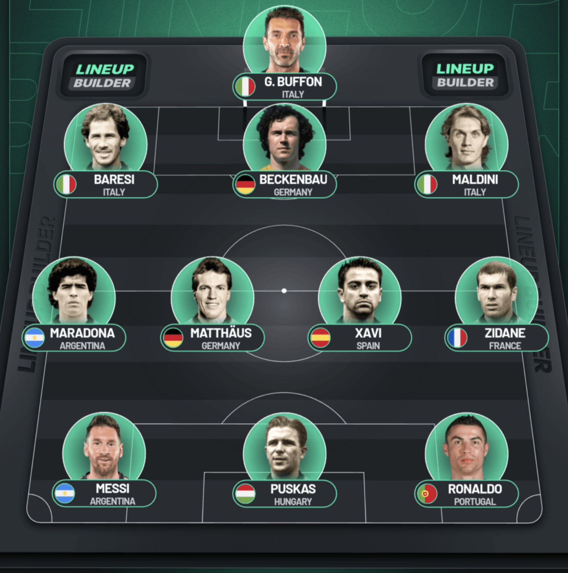 میانه میدان: ترکیب رؤیایی زیدان، ژاوی، ماتئوس و مارادونا سرشار از نبوغ و خلاقیت.