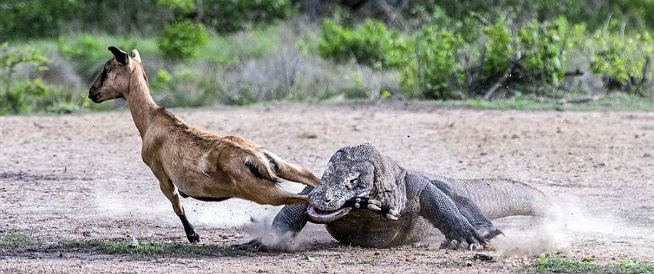 اژدهای کومودو به دلیل گوارش کند و مصرف غذای زیاد غذا، می تواند با خوردن یک وعده غذایی تا یک ماه زنده بماند.