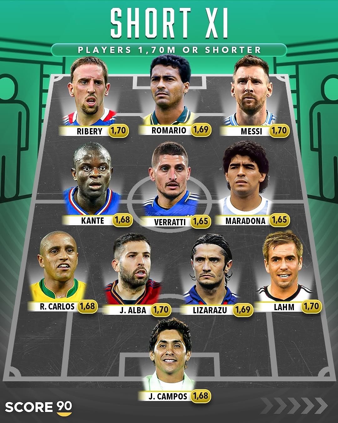 ترکیب منتخب کوتاه قدترین فوتبالیست های تاریخ با حضور مارادونا _ مسی _ روماریو _ روبرتو کارلوس