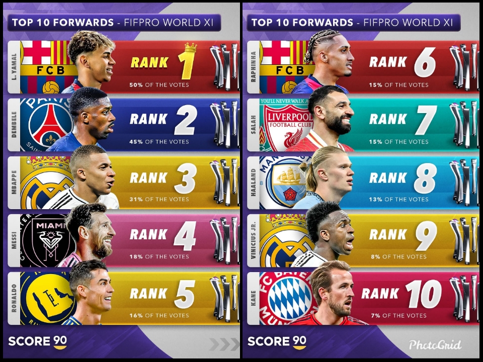 10 مهاجم برتر حال حاضر فوتبال جهان (2025) سقوط مسی و رونالدو از صدر ، با حضور کیلیان امباپه _ لامین یامال _ عثمان دمبله