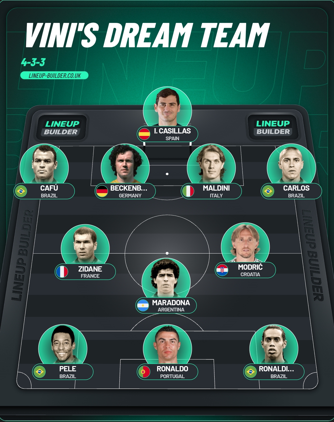 ترکیب منتخب تاریخ فوتبال از نگاه وینیسیوس جونیور
